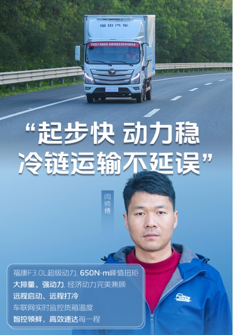 重庆大足的中国商用车产品测试还在封闭测试阶段,中国商用车品鉴师闫师傅已经琢磨好了开放路段的体验细节。作为跑了十年绿通的老司机,他对冷藏车的要求从来“不看虚的”——得能爬山路、省油耗、控温准,还得在乡镇小道里灵活穿梭。这次深度体验4.5吨蓝牌的欧马可S1智盈版全新平台福康F3.0动力产品,从起伏山路到平整干线,再到城郊村道,每一段路的感受都戳中了他的的核心需求。作为一名绿通司机,他更习惯用“日常运输视角”评车,毕竟参数再好看,不如实际开着顺手。